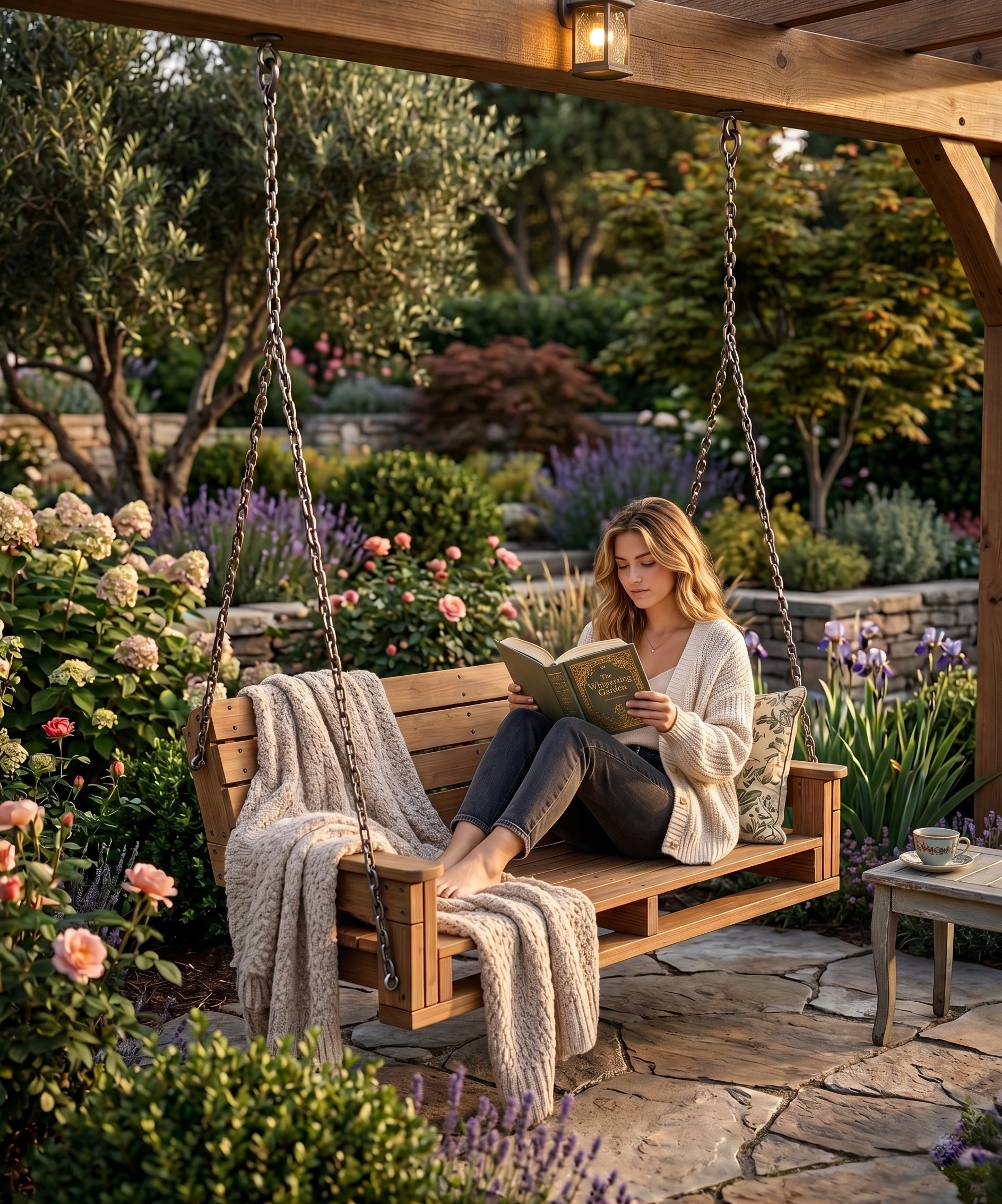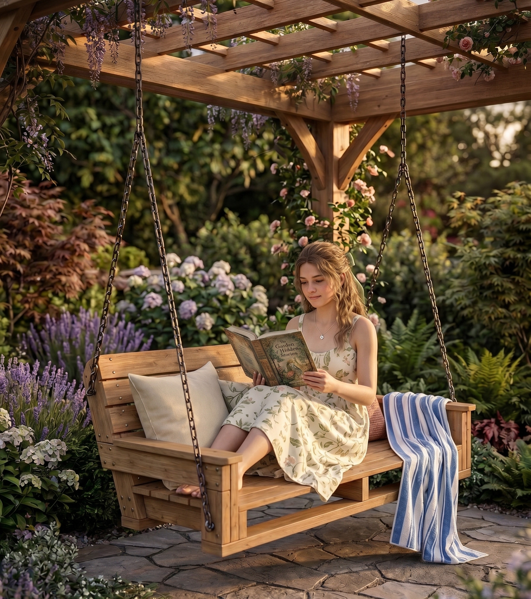 You now have a strong, comfortable, and custom-built pergola swing bench ready to enjoy.